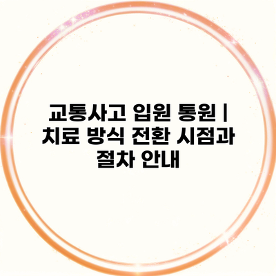 교통사고 후 입원 치료와 통원 치료는 각각의 장단점이 있어요. 상황에 따라 적절한 치료를 선택하는 것이 중요합니다. 절차와 전환 시점에 대한 명확한 이해는 여러분의 회복 과정에서 많은 도움이 될 거예요. 사고 후에는 꼭 전문의와 상담하고, 상황에 맞는 치료를 선택하세요.